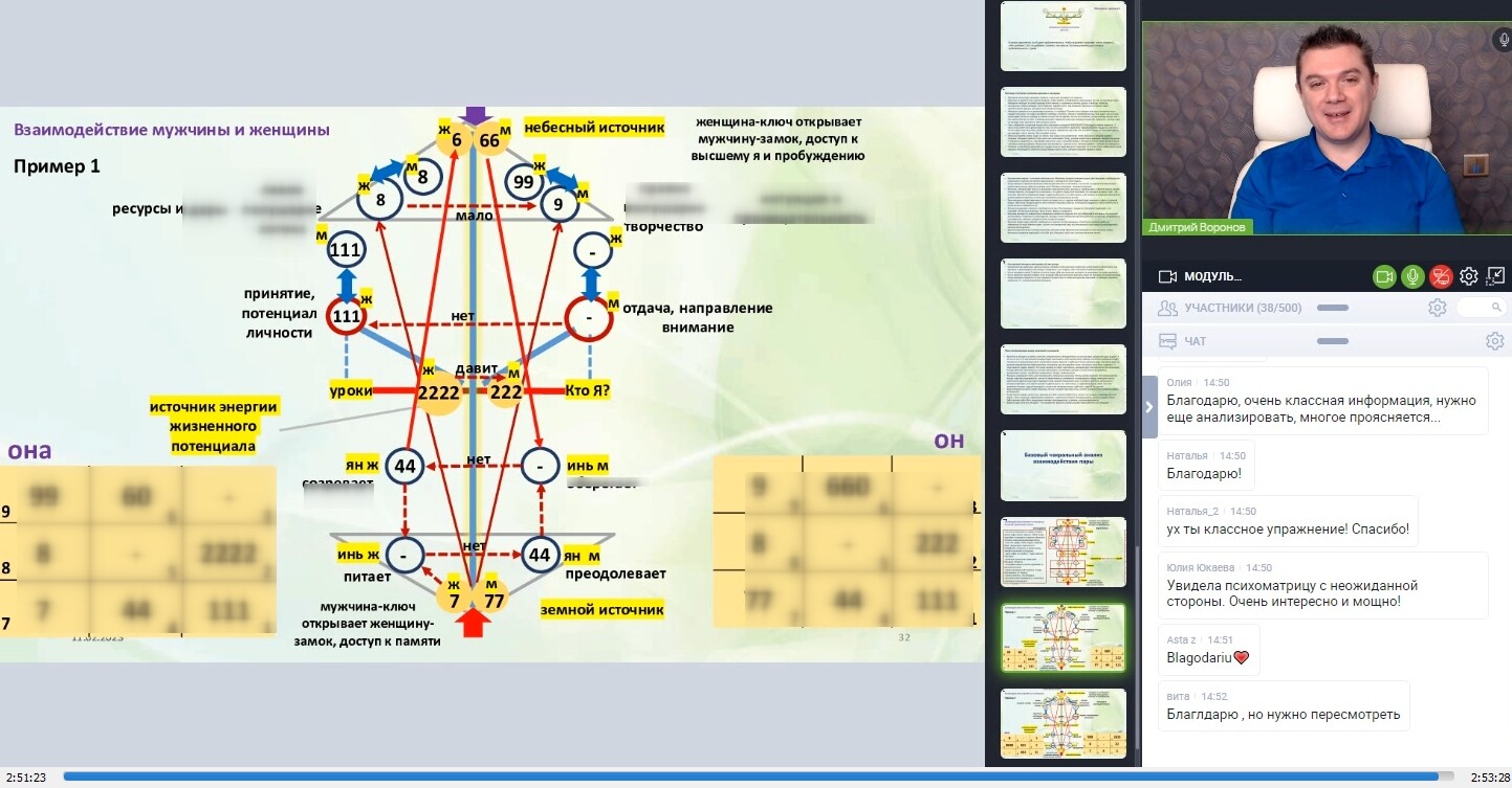 - Провёл более 400 вебинаров, раскрывающих глубину познания природы человека и его Судьбы